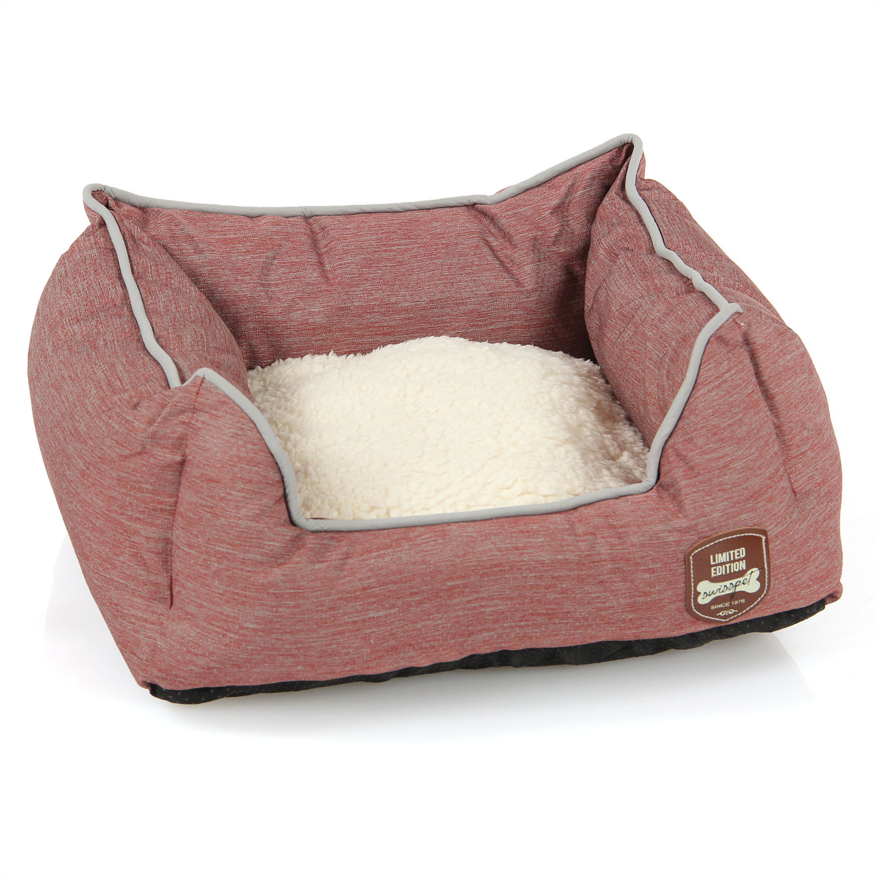 Das Hunde- & Katzenbett San Diego ist eckig. Es ist aus Polyester hergestellt und in drei verschiedenen Farben mit Wabenmuster erhältlich. Das Wendekissen ist aus grauem Polyester mit Wabenmuster und weissem Schafwoll-Imitat. Mit den beiden Stoffarten haben Sie immer die richtige je nach Saison. Im Sommer den kühlen Demin, im Winter das warme und weiche Schafwollimitat. Der Antislipboden verhindert ein verrutschen. Das Bett ist waschbar bei 30°C.