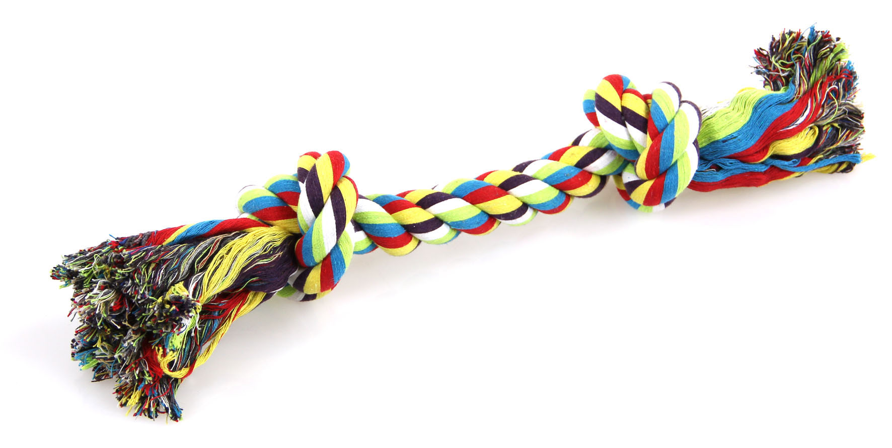 Der Kauknochen besteht aus robuster Baumwolle, so dass er einiges aushält. Dank der vier verschiedenen Grössen ist für jede Hundegrösse und -rasse das geeignete Hundespielzeug dabei.