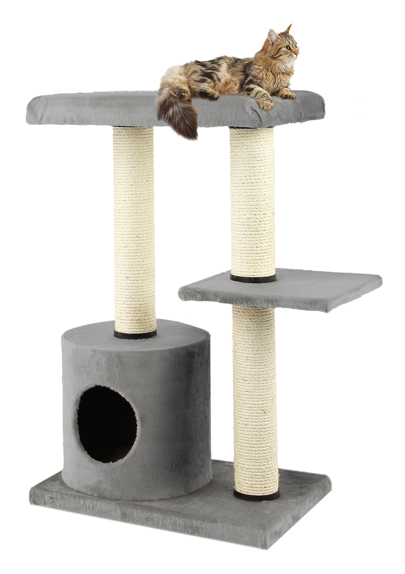 Die Sisalsäulen dienen der Krallenpflege und verhindern damit das Zerkratzen der teuren Möbel.