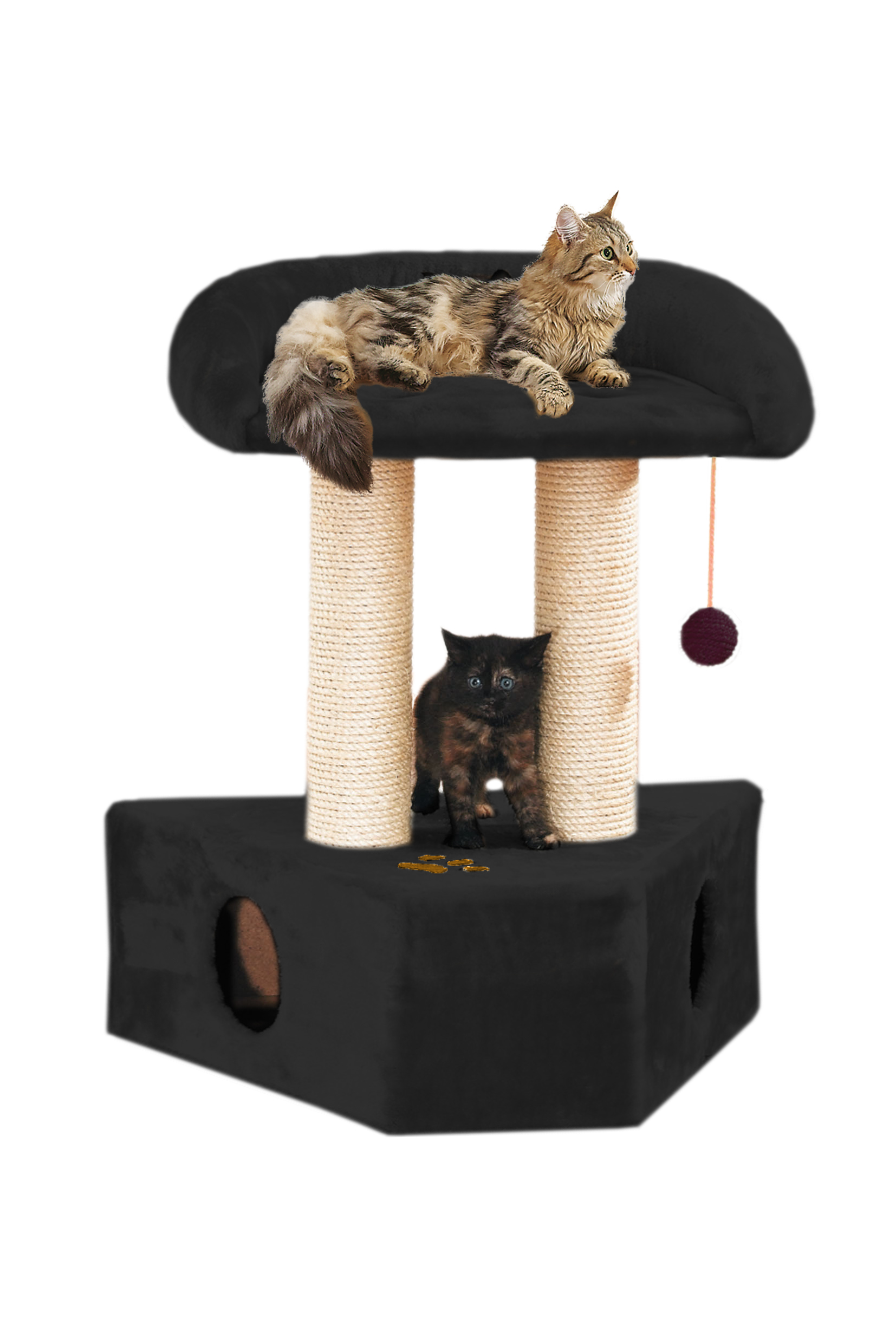 Besonders für Jungkatzen und kleinere Katzen geeignet, Sie lieben es zu erkunden, verstecken und zu kratzen, die beiden Sisalsäulen sind ideal für die ersten Krallenwetzversuche Ihrer Jungkatze/Kitten.