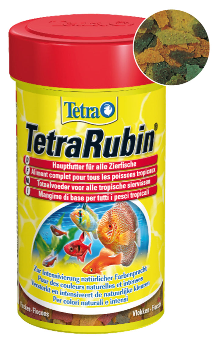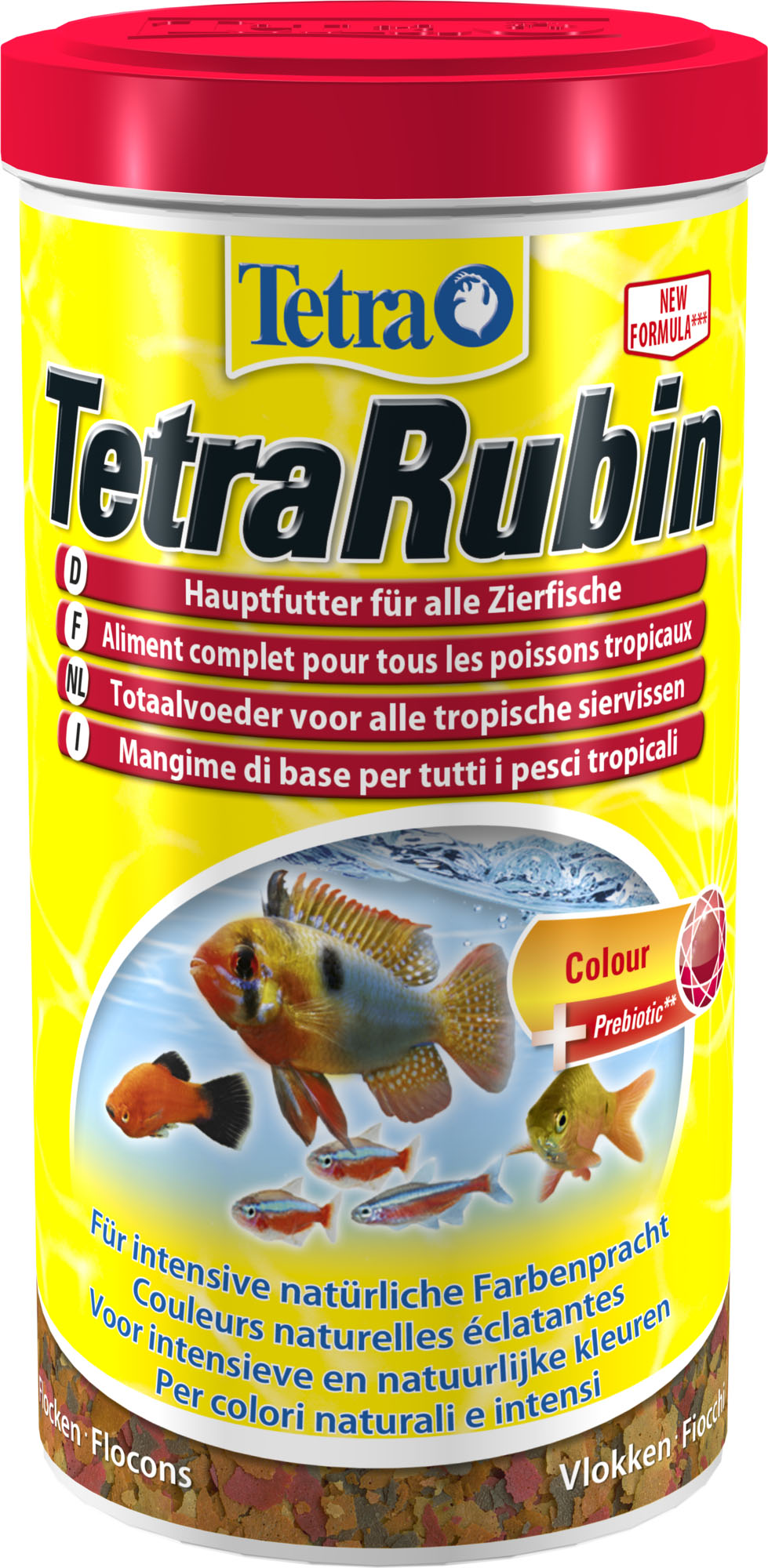 TetraRubin, Flockenfutter oder Granulat mit natürlichen Farbverstärkern für mehr Farbenkraft. Bringt durch spezielle Rohstoffe (keine Hormone) die natürliche Farbenpracht der Fische zur vollen Entfaltung. Die farbverstärkende Wirkung ist schon nach zwei Wochen Fütterung wahrnehmbar. Enthält alle wichtigen Nährstoffe, Vitamine und Spurenelemente.