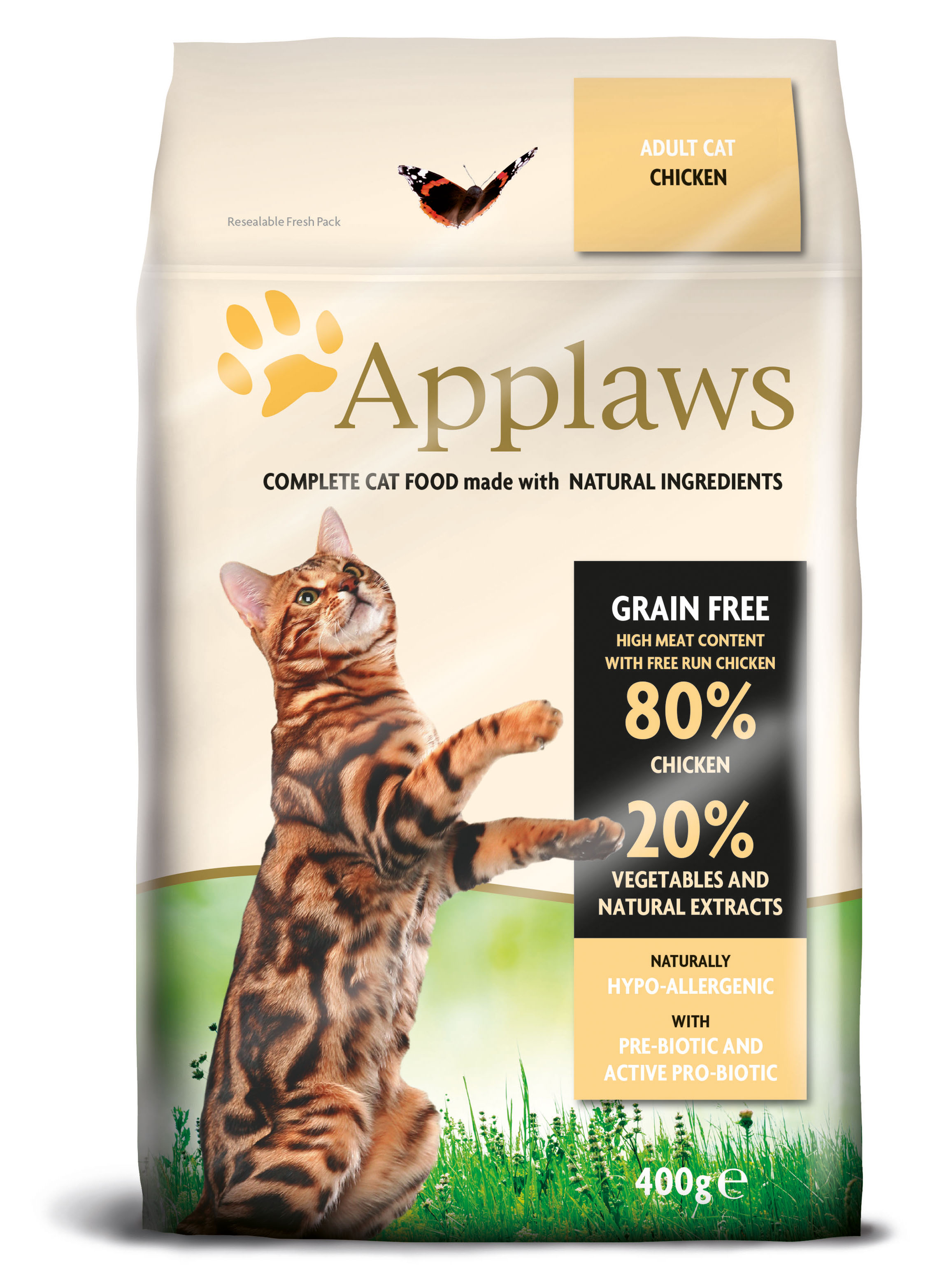 In der natürlichen Nahrung der Katze ist nur ca. 1 bis 5% pflanzlicher Anteil aus dem Magen-Darmtrakt der Beutetiere enthalten. Das in vielen anderen Trockenfutter enthaltene Getreide kann von Katzen nicht verwertet und nur schwer verdaut werden. Überschüssige Kohlenhydrate werden nicht gespeichert sondern in Glykogen oder Fett umgewandelt. Folgen können Fettleibigkeit, Erkrankungen der Leber und der Bauchspeicheldrüse oder sogar Diabetes sein. In Applaws Hühnchen Trockenfutter ist Fleisch die einzige Eiweissquelle und kann von Ihrer Samtpfote effektiv in Energie umgewandelt werden. Des Weiteren ist dieses Katzenfutter auch für Katzen mit Allergien und Unverträglichkeiten geeignet.