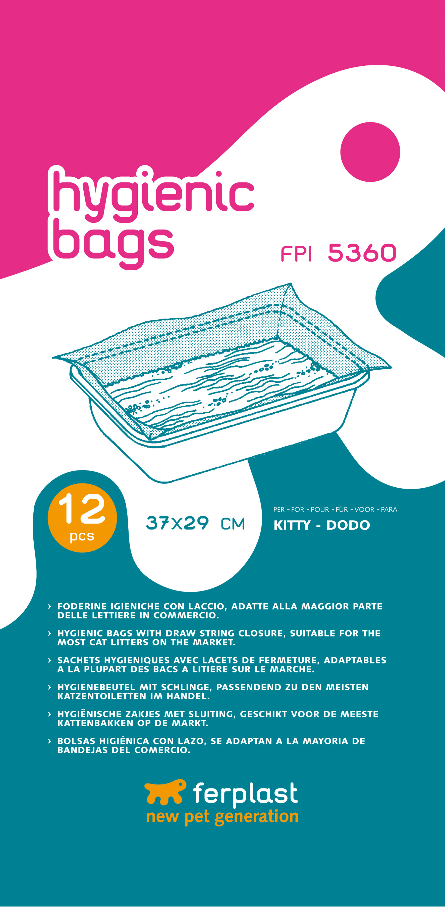 Hygienische Polybeutel für Katzentoiletten halten die Toiletten sauber. Hygienebeutel mit Zugband zum Sammeln schmutziger Einstreu. Die Beutel sind sehr stabil und praktisch, sie können im Handumdrehen in Ihrer Katzentoilette befestigt werden.