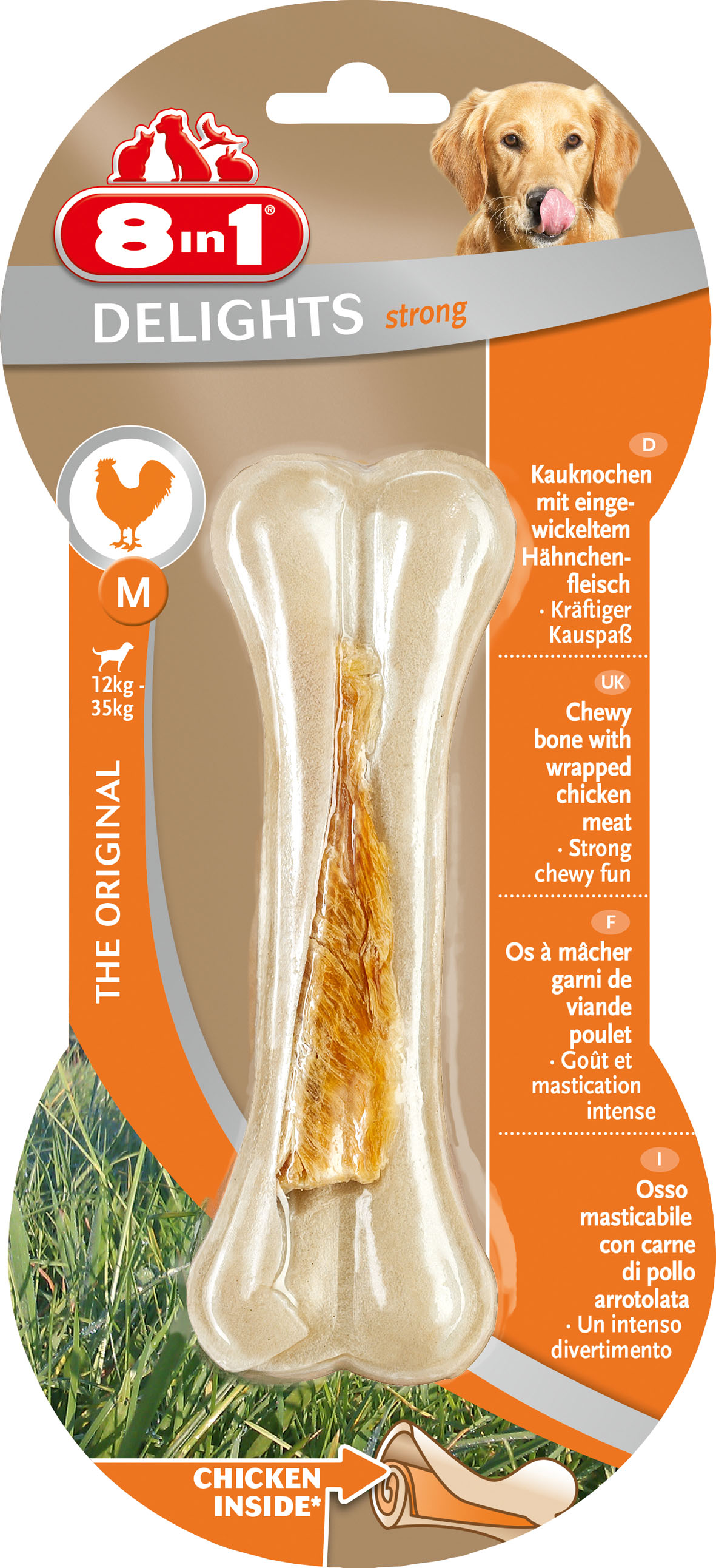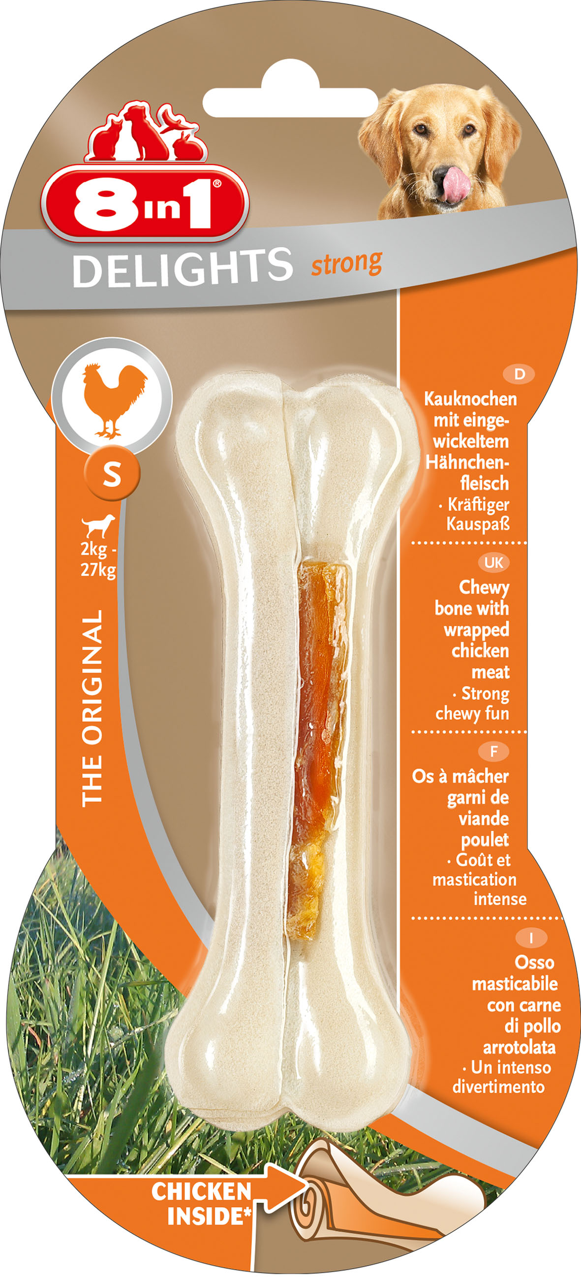 Kauknochen mit Hähnchenfleisch - extra langanhaltender Kauspass. Leckeres Hähnchenfleisch in fest gepresster Premium-Rinderhaut - die einzigartige Kombination aus Kauknochen und Belohnung. Variante für extra starkes Kauvergnügen, befriedigt den natürlichen Kauinstinkt des Hundes. Anhaltender Kauspass ohne Reste. Pflegt die Zähne, vermindert Plaque und beugt so der Zahnsteinneubildung vor. Nur 2% Fett. Ohne künstliche Farbstoffe und Geschmacksverstärker.