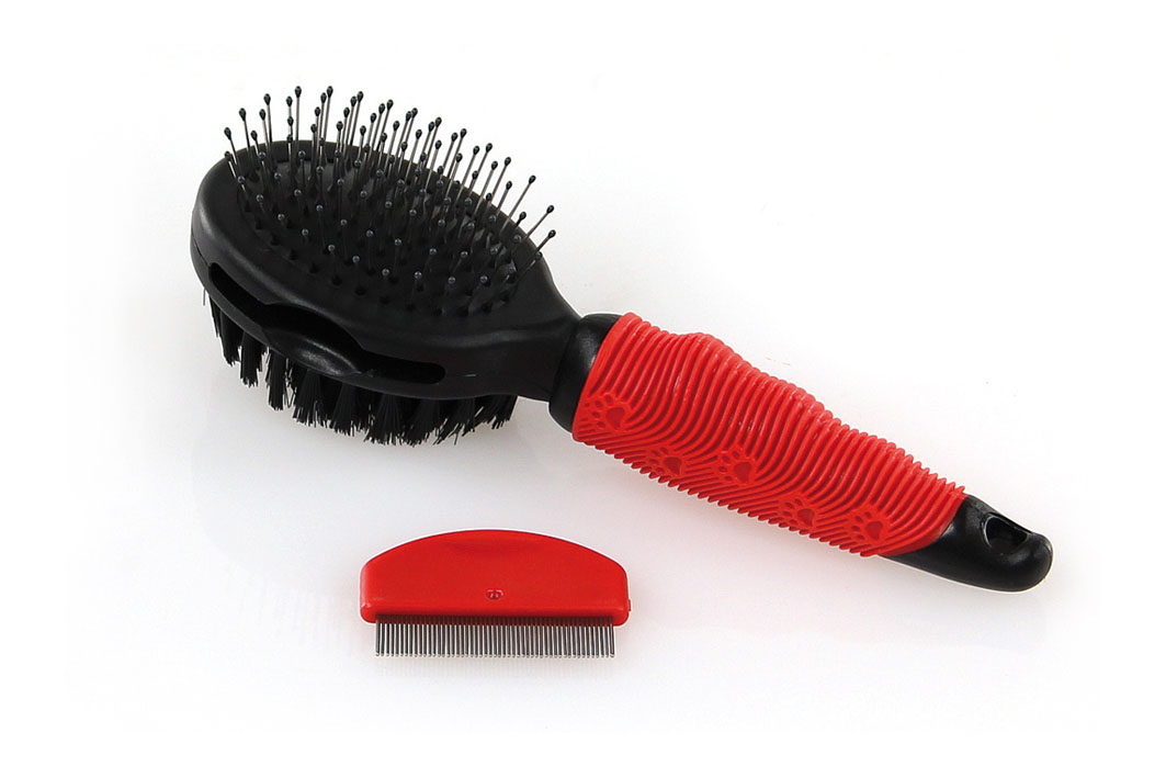 Un côté avec pics métalliques avec boucles de protection en plastique pour protéger la peau sensible. Un côté avec brosse en perlon. Le toilettage est très important chez les chiens et les chats. Le peigne de nettoyage pour un nettoyage facile peut être facilement stocké dans la tête de brosse après utilisation.