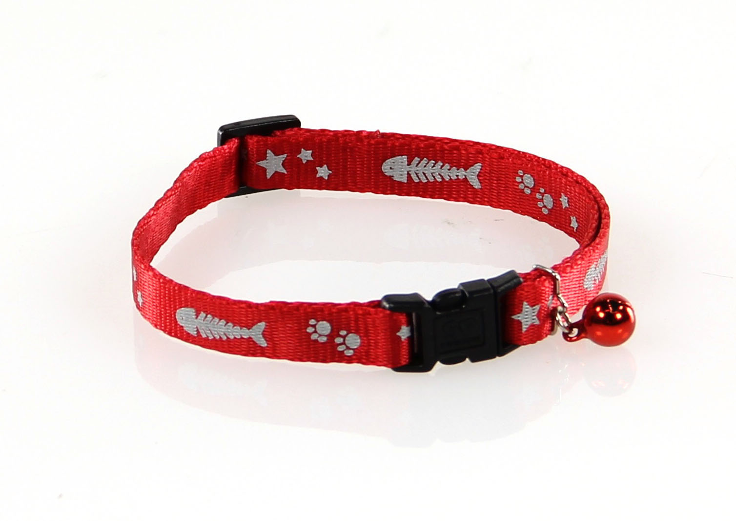 - Larghezza: 10 mm, lunghezza: 20-30 cm, regolabile - Disponibile in tre colori, con motivo a pesci - Campanella inclusa - Riflettente - Con chiusura di sicurezza
