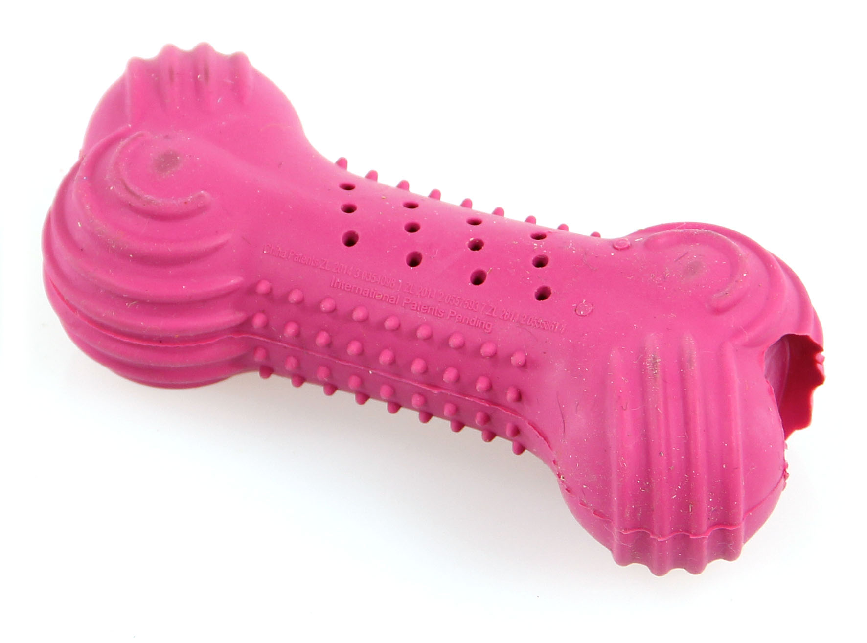 Der Crunchy Bone besteht aus einen stabilen Softgummi, dieser hat zum Vorteil, dass er im Gegensatz zu Knochen, nicht splittern und Ihren Liebling somit auch nicht verletzen kann.